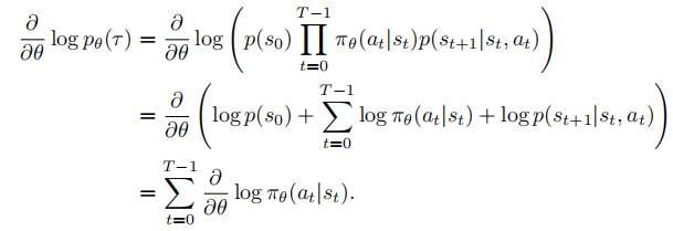 可以看出,∂/∂θ log pθ(τ)是和状态转移概率无关,只和策略函数相关。