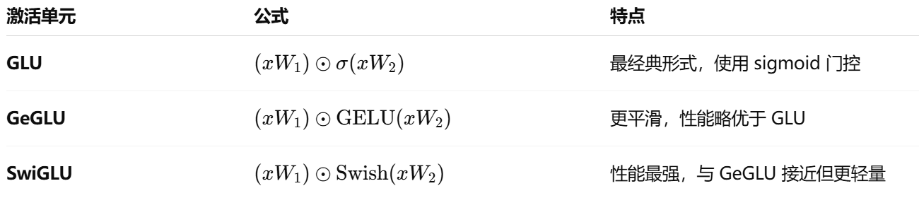 论文中,SwiGLU 在 Transformer 语言模型任务上通常能比 ReLU / GELU 提供更好的困惑度(perplexity)。