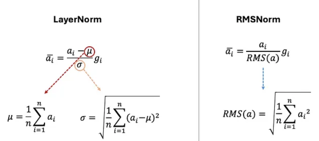 RMSNorm 之所以能取得更高的效率,是因为其作者证明了 LayerNorm 的优势源于重缩放不变性而非中心化不变性。这一发现使他们能够从归一化过程中移除均值计算,从而简化了流程,使其同样有效,并显著提高了效率。